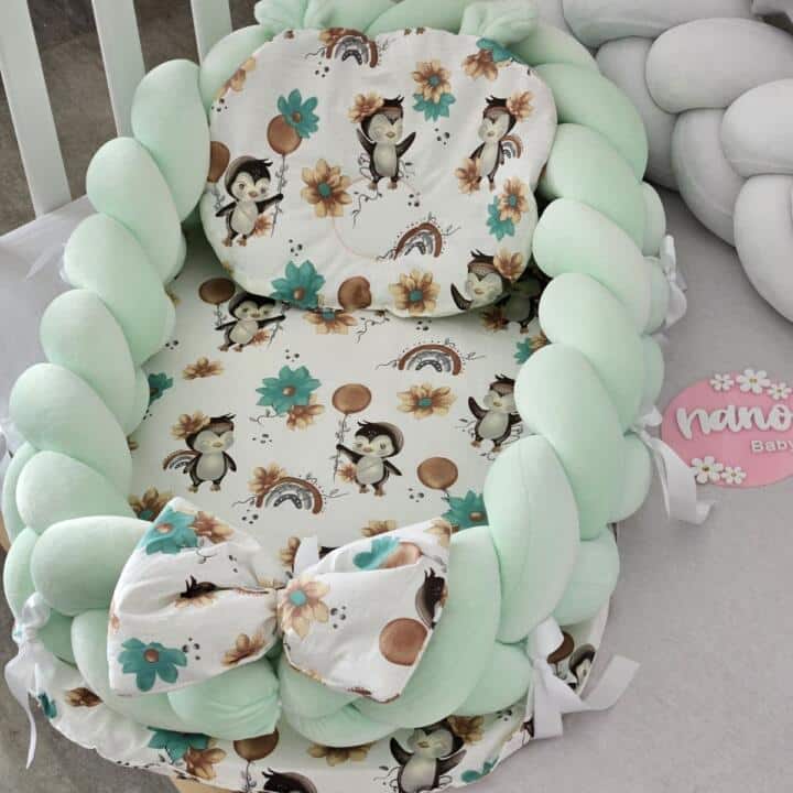 Gnijezdo pletenica Velvet Mint i Pingvini, s jastukom