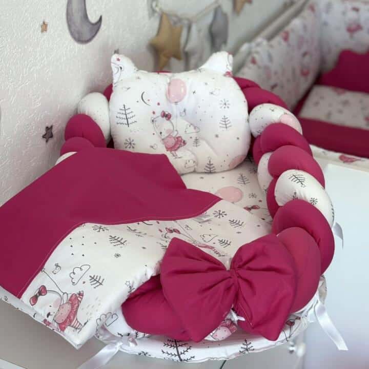Gnijezdo pletenica s jastukom i jorganom – Pink i Baloni