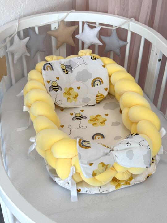 Gnijezdo je višenamjensko, uz njega dolazi jastuk s ušima, a pletenica se može odvojiti od podloge pa se pletenica i podloga mogu odvojeno koristiti i nakon što beba preraste gnijezdo