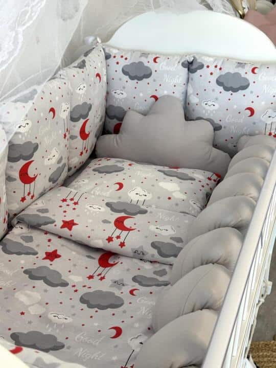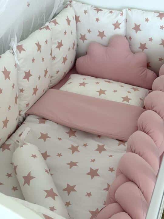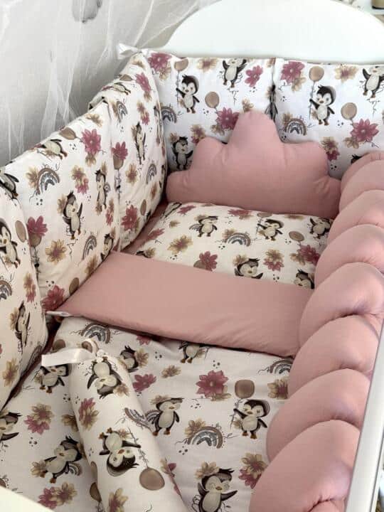 Punjenje ogradice je 400 gramski koflin, punjenje jorgana je 200 gramski koflin, a punjenje pletenice i jastuka je antialergijska silikonska pahuljica.