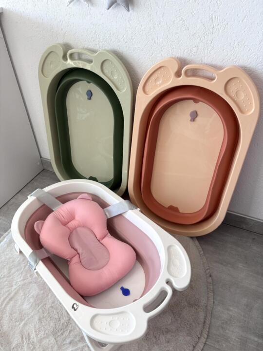 Sklopiva silikonska kada, dostupna u 5 boja i to: roze, puder roze, svijetlo plava, tamno plava, zelena.