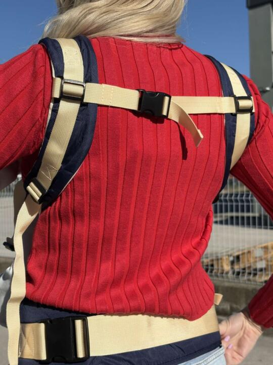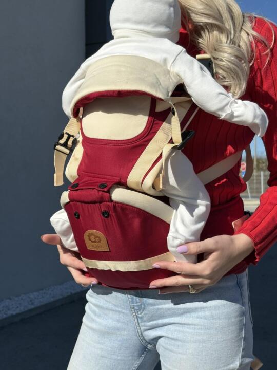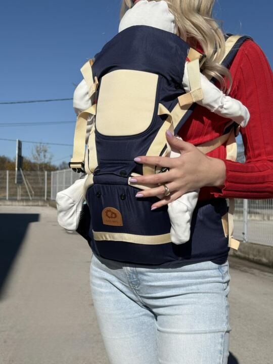 - Ergonomski oblik osigurava pravilan položaj bebe, dok široke naramenice i pojas ravnomjerno raspoređuju težinu, pružajući maksimalnu udobnost.