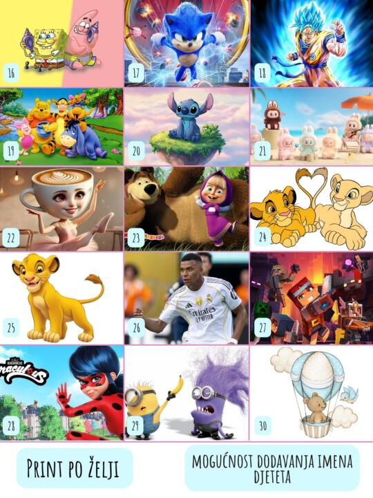 *Mogućnost izrade u bijeloj boji ili slika po želji (dostupne slike u galeriji)