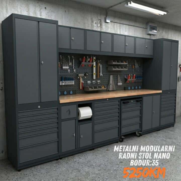 Metalni modularni radni stol “Nano-Bodur” (NO:35) (Okvir – crna / Paneli – antracit)