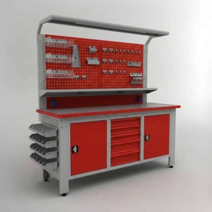 Metalni radni stol “Nano-Bodur” (NO:43) (okvir svijetlosiva-paneli crvena)