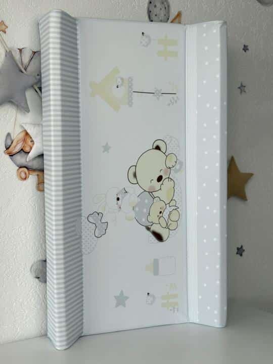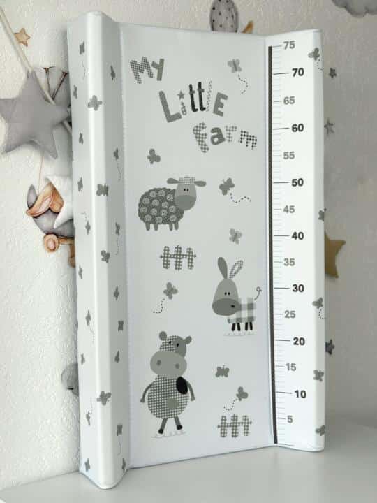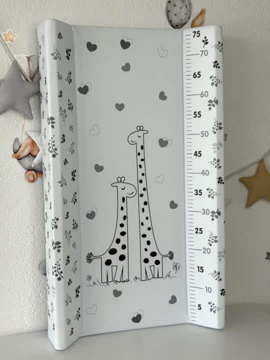 Podloga za presvlačenje je praktična i sigurna opcija za presvlačenje bebe. Ima veseli dizajn i ugrađen metar za praćenje rasta bebe. Debelo je postavljena i mekana, što osigurava dodatnu udobnost za bebu. Napravljena je od sigurnog i lako održivog materijala. Podloga je izuzetno jednostavna za održavanje – dovoljno je prebrisati je vlažnom krpom.