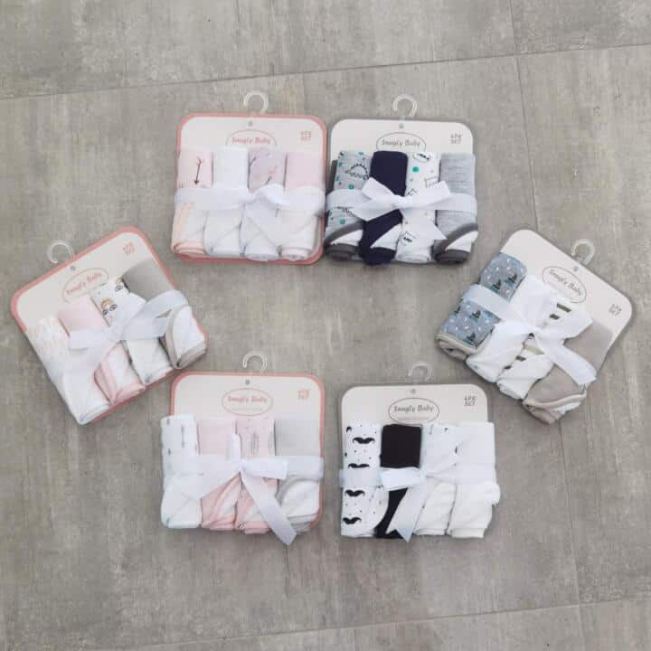 Set 4 kom frotirnih brisalica Snuggly Baby u kombinaciji svijetlo roze boje. Materijal: 100% organski pamuk.