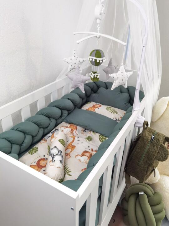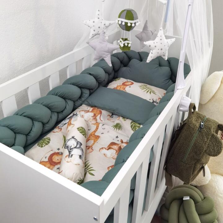 Set Braid Safari – Pletenica sa 4 strane, plahta, jastuk, jorgan i dva ukrasna jastuka – 120x60cm
