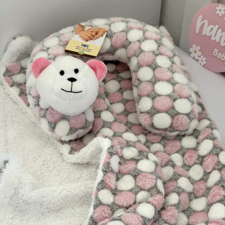 Set jastuk i dekica za putovanje – Roze sa Bijelim tufnicama