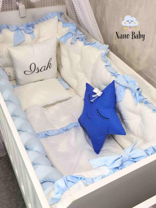 Najnježniji set za krevetac za male prinčeve i princeze – Visoko kvalitetna ogradica sa tri strane, pletenica, jastuk, jorgan, plahta.