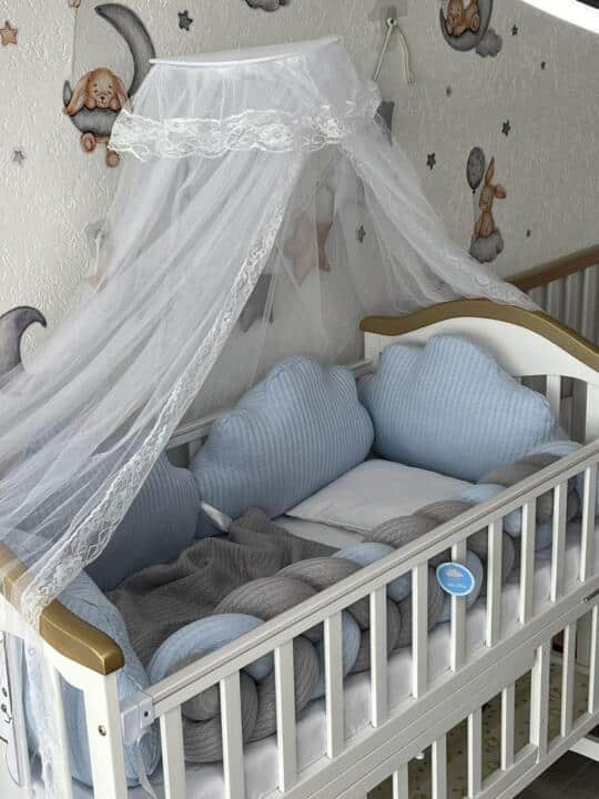 Najnježniji set za krevetac – Visoko kvalitetna ogradica sa tri strane, pletenica, jastuk, plahta i dekica.