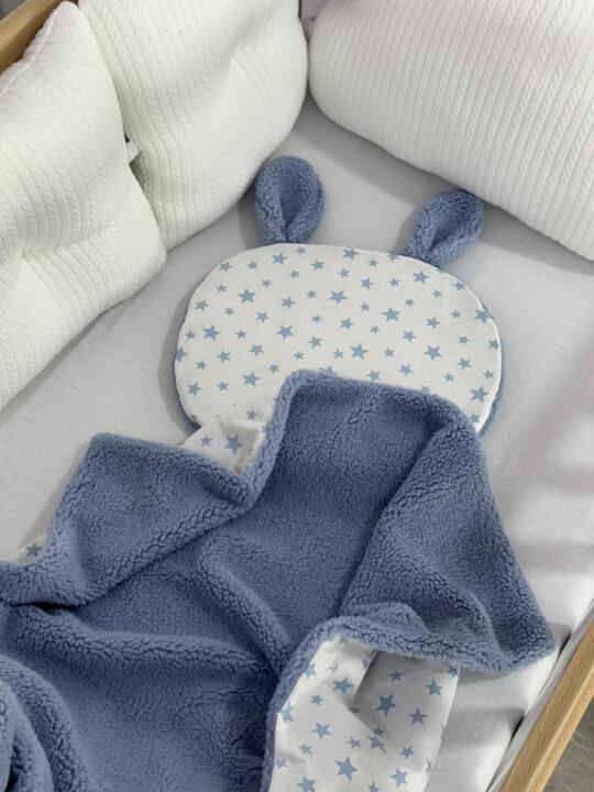 Set Teddy Jastuk zeko i Dekica – Plava i Bijela sa plavim zvjezdicama