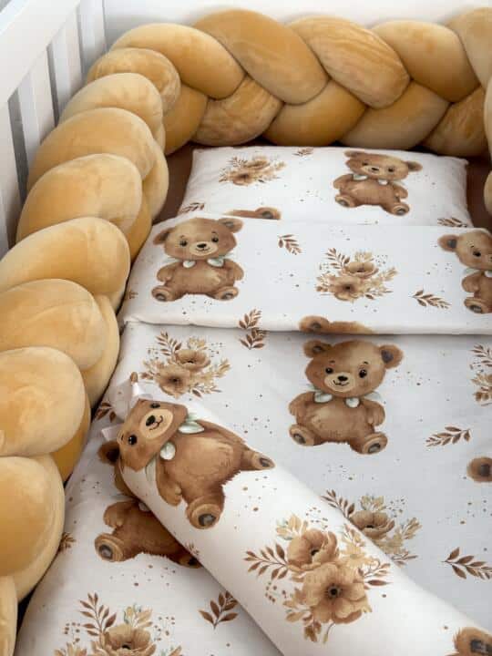 Set Velvet Braid Smeđi Medo i Smeđa – Pletenica sa 4 strane, plahta, jastuk, jorgan i dva ukrasna jastuka