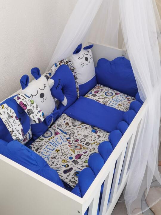 Set Cloud Plava zvjezdica-Ogradica sa tri strane, plahta, jastuk, jorgan i dva ukrasna jastuka – 120x60cm