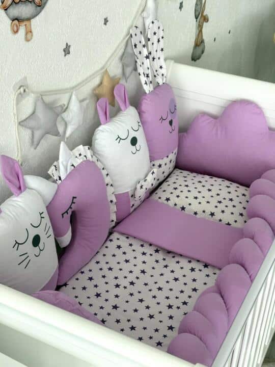 Ogradica sa tri strane, pletenica, jastuk, jorgan, plahta.